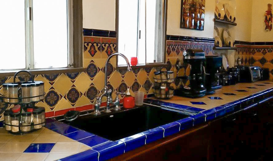 Our ceramic tile is handcrafted and decorated by hand using an ancient method called Cuerda Seca that literally translates to dry cord. This technique has been used for centuries in Spain and other Mediterranean countries. The depth and richness of the colors are obtained by painstakingly applying every single drop of glaze by hand onto a delineated design.