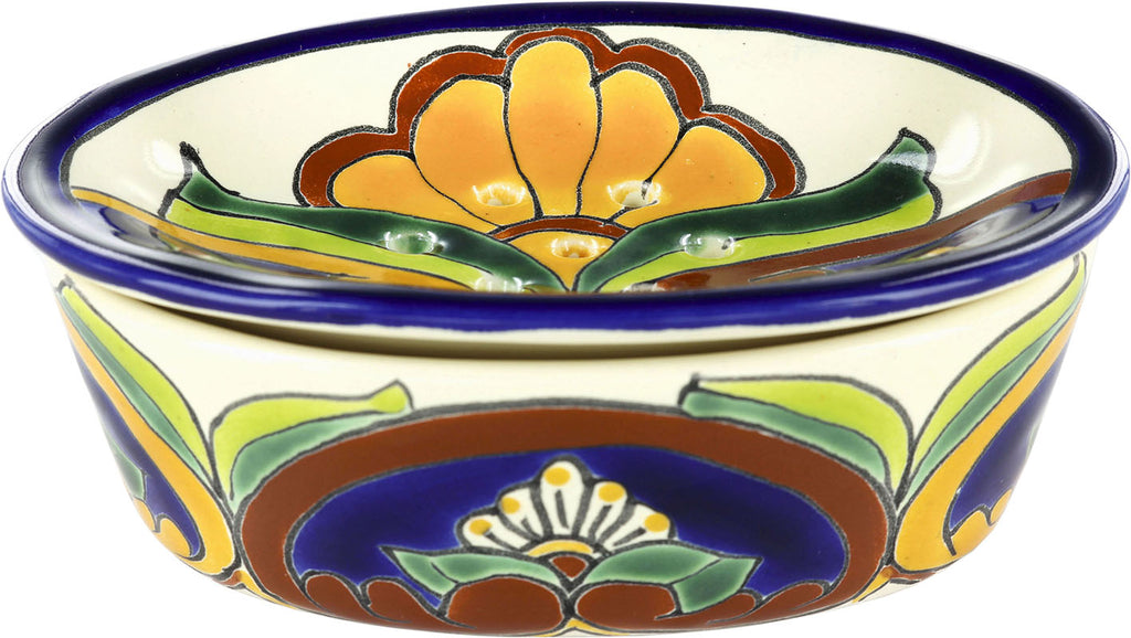 These talavera ceramic soap dishes are the perfect complement for your existing talavera sink. Or to complement your Mexican tile in your bathroom countertop or in your kitchen back splash. Rich vivid colors make this is a sturdy piece of art that can be used to delight your friends and family. Each soap dispenser is hand painted.
