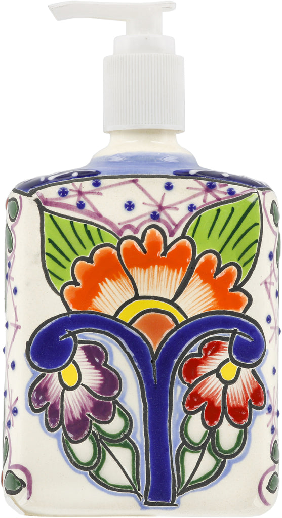 These talavera ceramic soap or lotion dispensers are the perfect complement for your existing talavera sink. Or to completment your Mexican tile in your bathroom countertop or in your kitchen back splash. Rich vivid colors make this is a sturdy piece of art that can be used to delight your friends and family. Each soap dispenser is hand painted.