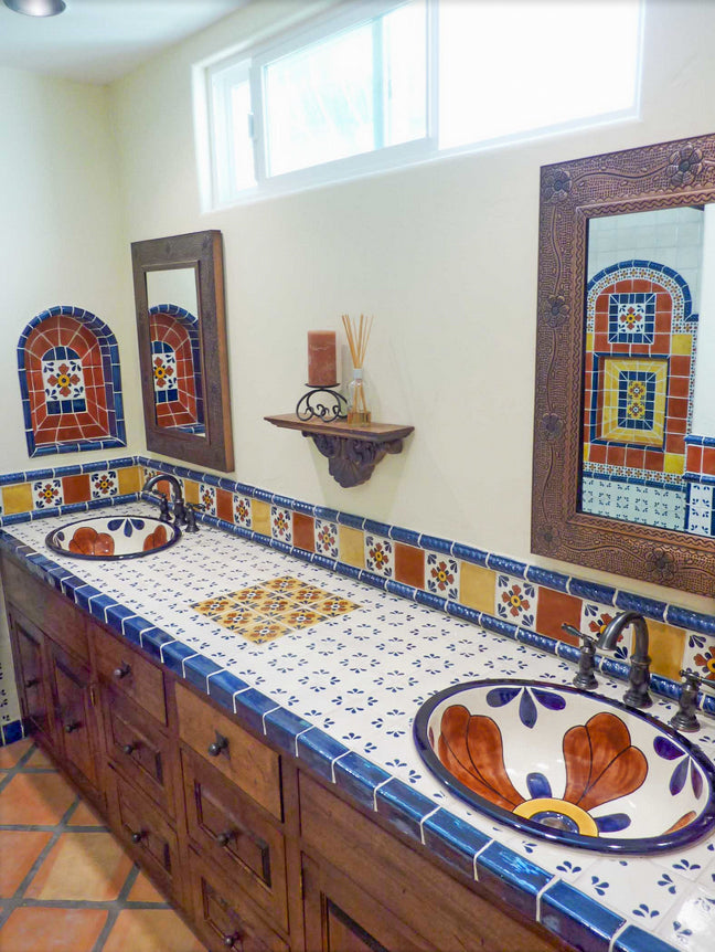 Moderate variations are expected for all Handcrafted Talavera tiles. Size, color, color runs offs, texture and design are all likely to vary from piece to piece due to the handmade process. Therefore, it is recommended that the entire range is viewed and arranged before installation.