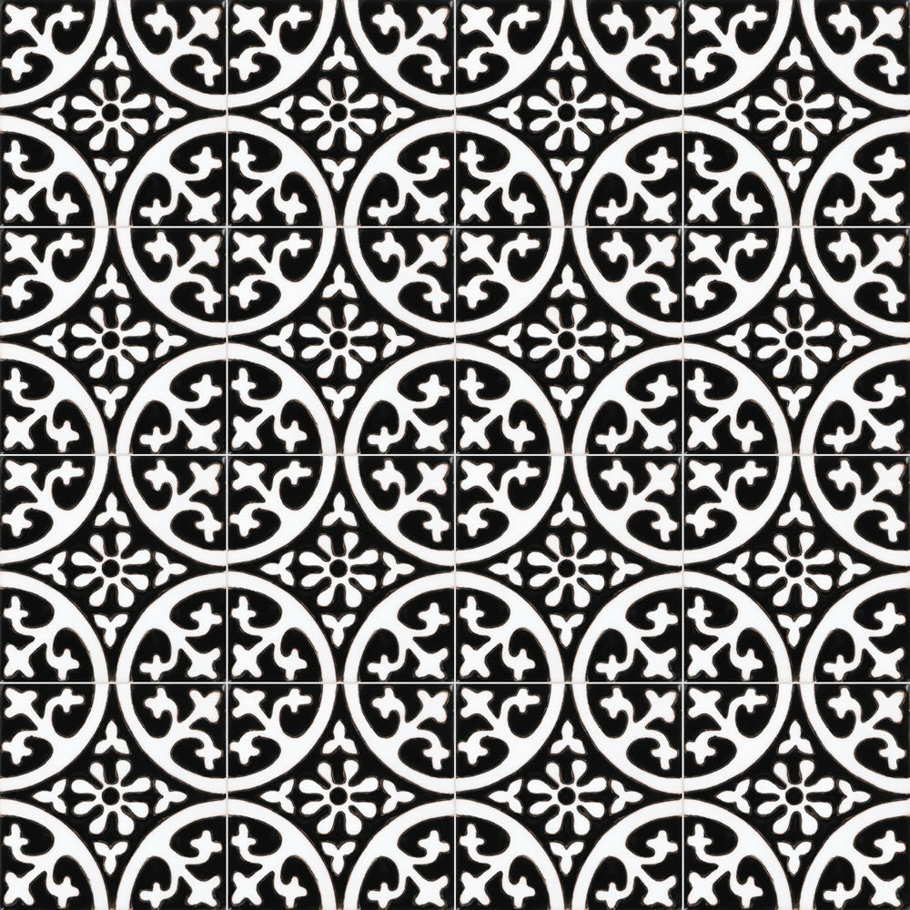 Santa Barbara Ceramic Decorative Tile: La Quinta Black & White 1 Gloss